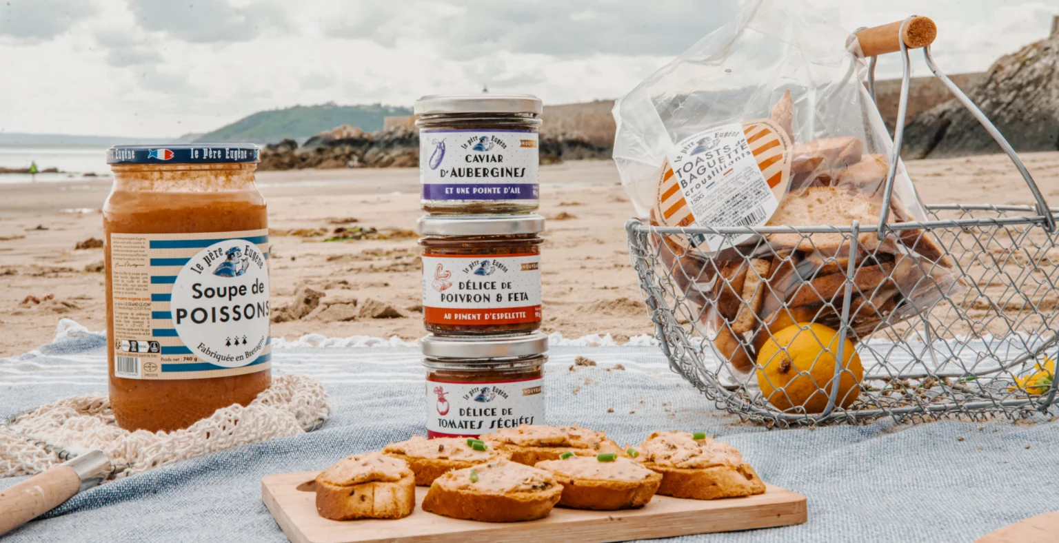 Je découvre ! C'est bientôt saison des soupes ! Dégustez là avec une pointe de rouille et de croûtons Riche en poissons(40%) à la texture incomparable et gourmande Toute l'année A la découverte des coffrets gourmands Idée cadeau ! Mettez du soleil dans vos apéritifs avec nos délicieuses Rillettes de la mer ! Je découvre ! pique-nique père eugène c'est breizh c'est bon acheter soupe de poisson RILLETTES DE LA MER PERE EUGENE RILLETTES DE LA MER