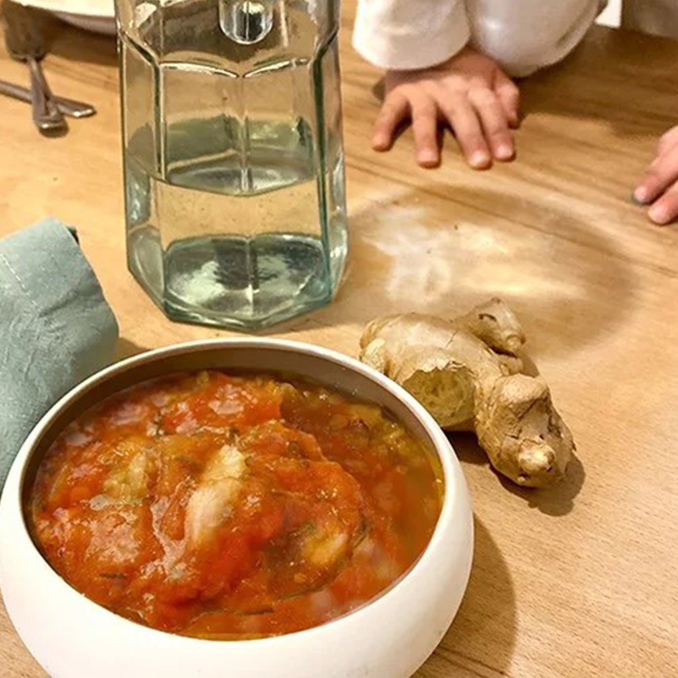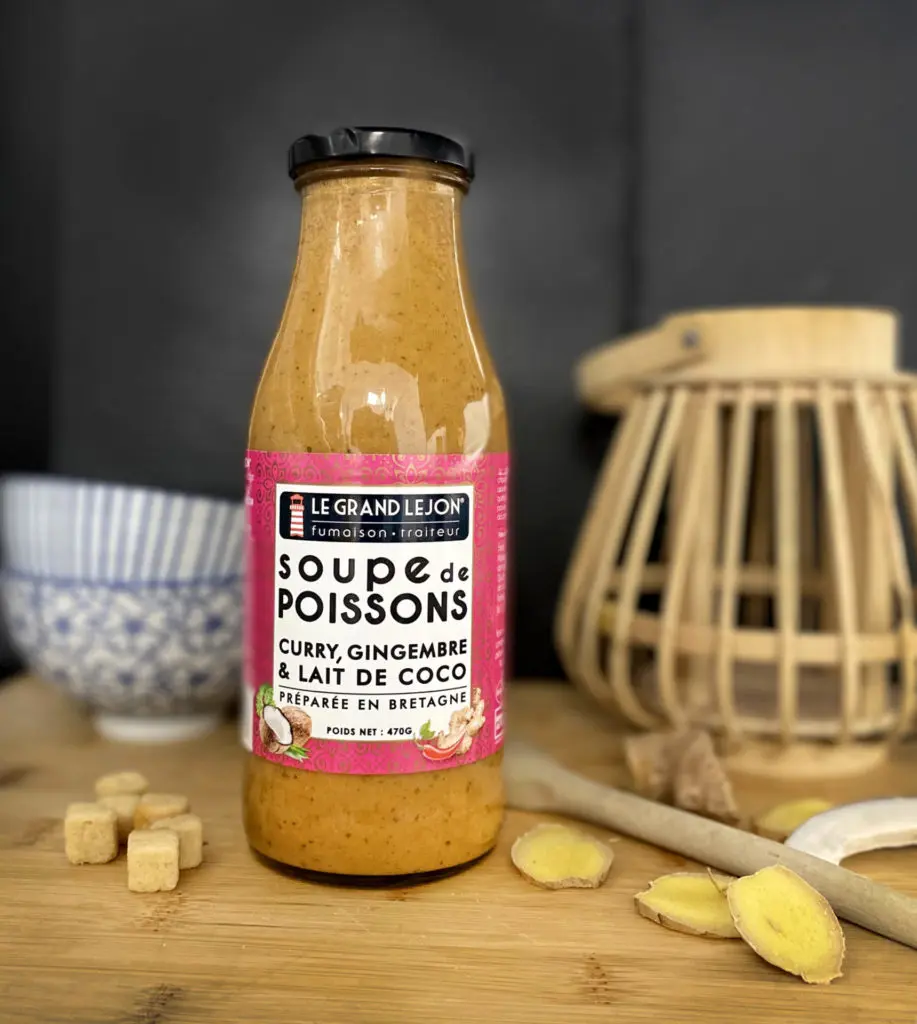 J’aime beaucoup la soupe de poissons au curry, gingembre et lait de coco.