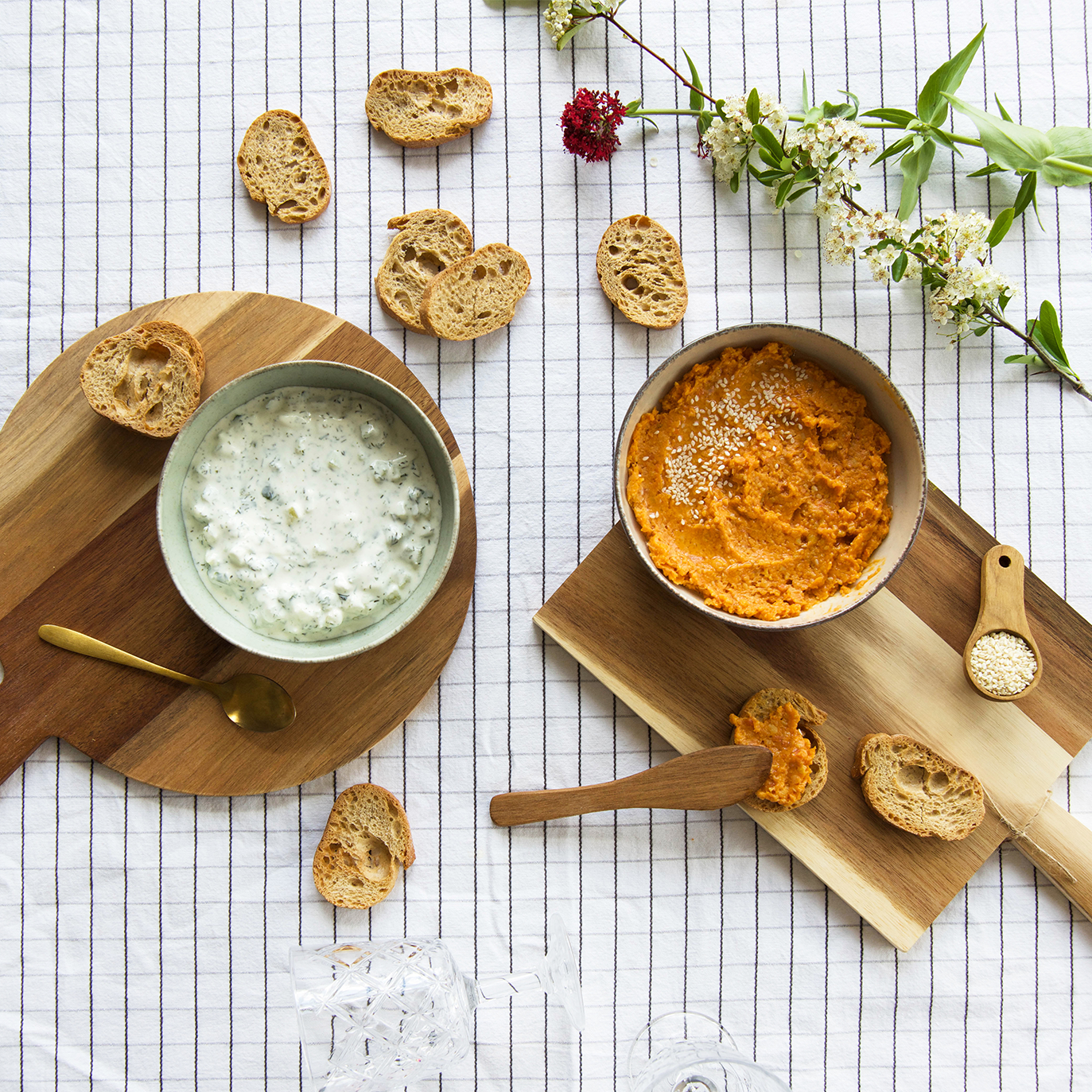 A tartiner ou à dipper, ils seront sans nul doute les stars de l’apéritif : Guacamole, Tzatziki, Ktipiti ou Humous.