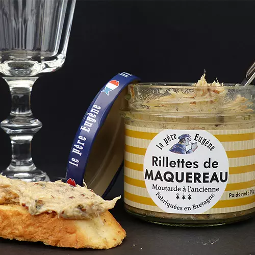 Pépite du Père Eugène : Les fameuses rillettes de maquereaux à la moutarde à l’ancienne dont la chair fondante du maquereau est sublimée par la saveur légèrement piquante de la moutarde…