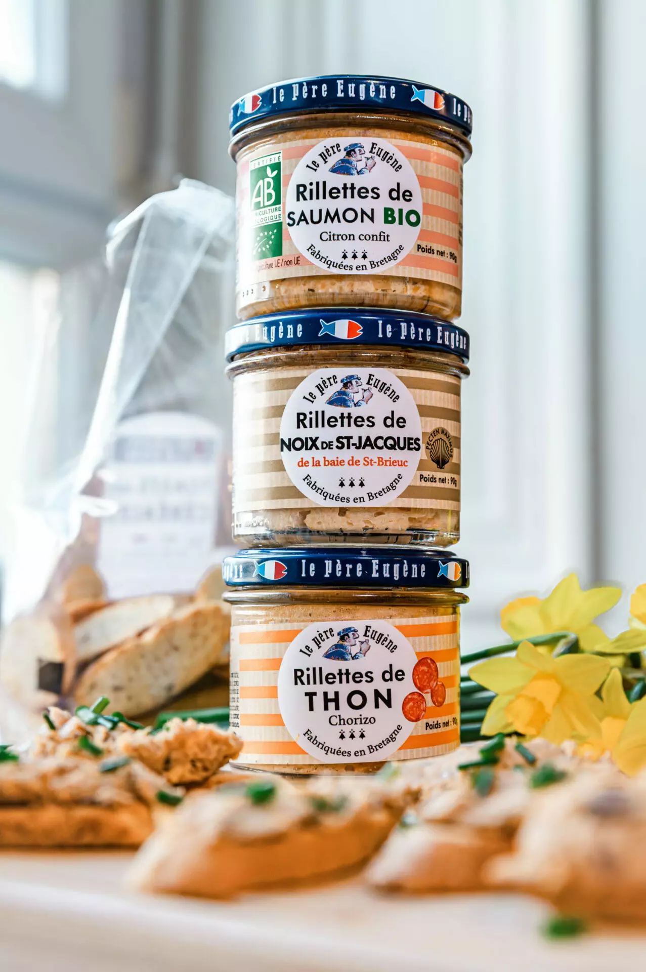 Ces rillettes de St-Jacques sont cuisinées avec les véritables noix de saint Jacques de la baie de Saint-Brieuc pour une saveur et une finesse assurées, le Père Eugène vous offre ici un moment d’exception, à découvrir en apéritif ou en entrée.