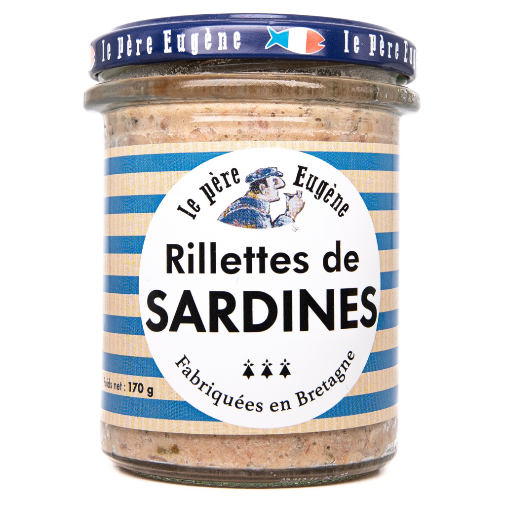 Le Père Eugène vous offre le meilleur de sa Bretagne: les sardines pêchées sur les côtes bretonnes ! Les rillettes de sardines sont délicatement salées et ont une texture onctueuse. Nos rillettes de sardines sont idéales sur un toast. Ces petits poissons de caractère et au goût bien marqué raviront les papilles des fins gourmets. Nos rillettes de sardines sont préparées selon un savoir-faire authentique. Une recette traditionnelle en direct du producteur.